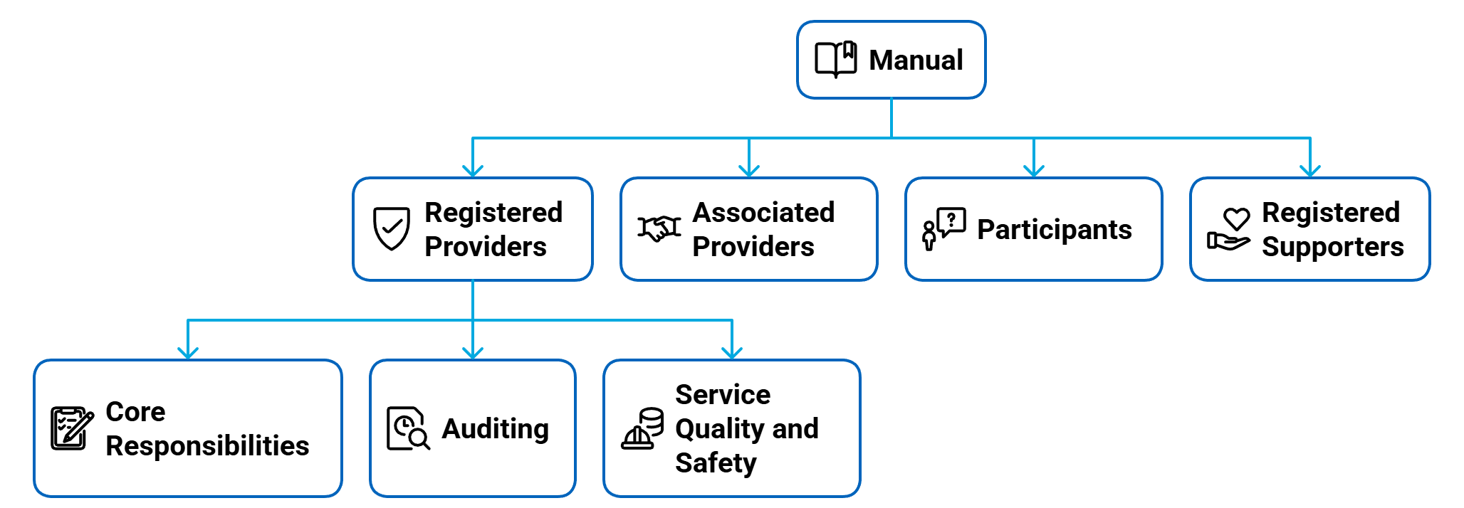 However, the manual is also a valuable resource for associated providers, businesses who have subcontracting arrangements with registered providers, as well as for participants and registered supporters who need to understand how the program operates and the rules that apply to their role.